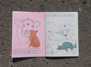 Druck und Zine Experiment mit Katzen als Hauptthema.