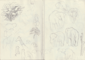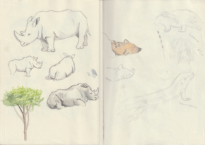 Studien vom Zoo über das Tierheim bis hin zum Museum. Diese Zeichnungen sind vor Ort entstanden.